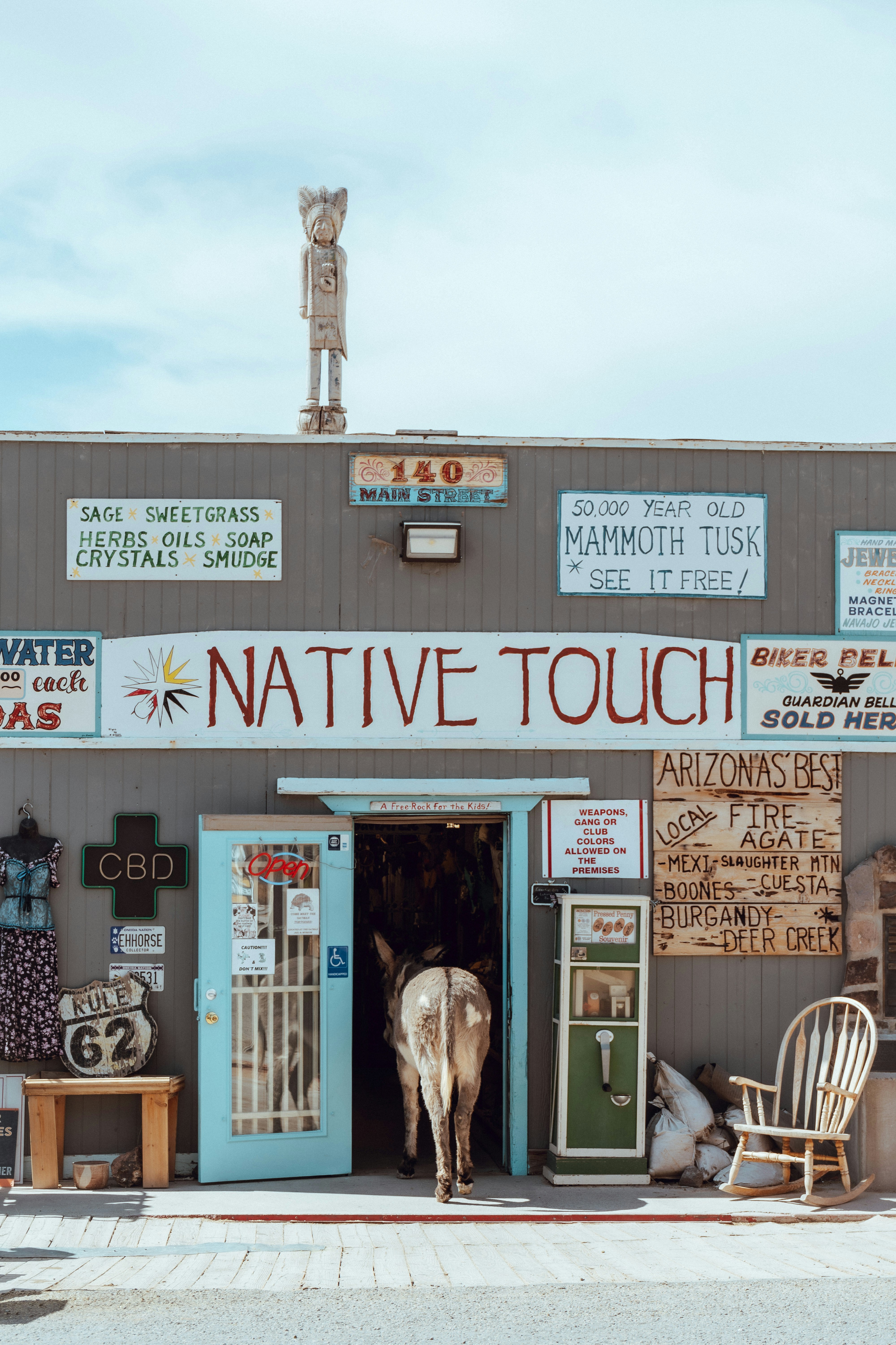 個人的に、このアメリカ西海岸ルート66ドライブ体験で最も刺激的だったのがここです。 かつてのゴールドラッシュで栄えた鉱山町ですが、現在は「野生のロバ(Burro)」が町中を我が物顔で歩き回っています。 車の窓を開けていると、餌を求めて顔を突っ込んできます(人参などが現地で売っています)。