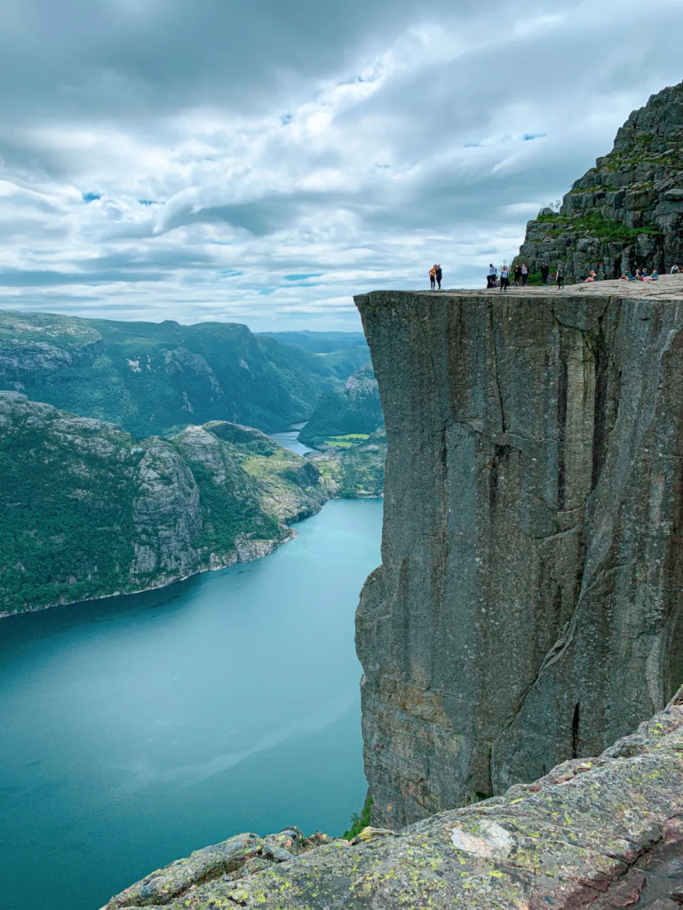 ノルウェー南部にあるルーセフィヨルドは全長42km。波が切り立った崖を打ちつけ、山々の間を流れています。中でも最も見逃せないのが、標高604m、フィヨルドへ垂直に突き出たプレーケストーレン!
