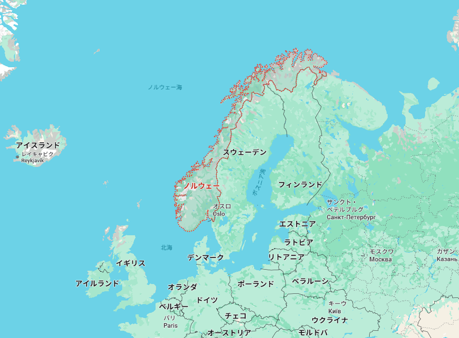 ノルウェーはスカンジナビア半島の西側に位置し、スヴァールバル諸島やヤンマイエン島も含みます。スウェーデン、フィンランド、ロシアと国境を接し、入り組んだ海岸線は世界に誇るフィヨルド景観を生み出しています。