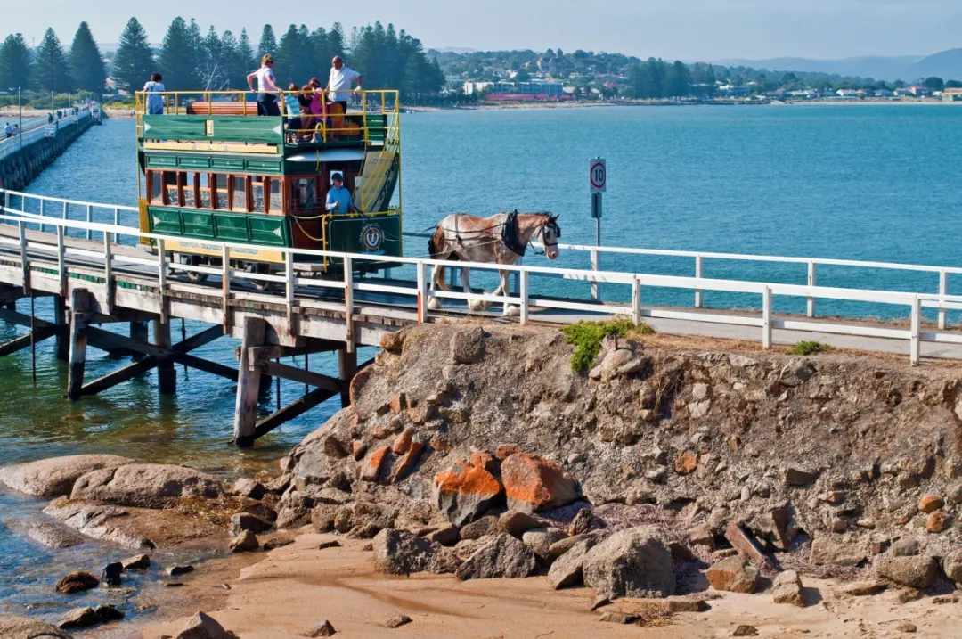 グラナイト島とは長さ600メートルの木製桟橋でつながっており、徒歩でも渡ることができます。しかし、よりおすすめなのは、オーストラリアで唯一残る伝統的な馬が引くトラムに乗り、道中の美しい景色を見ることです。