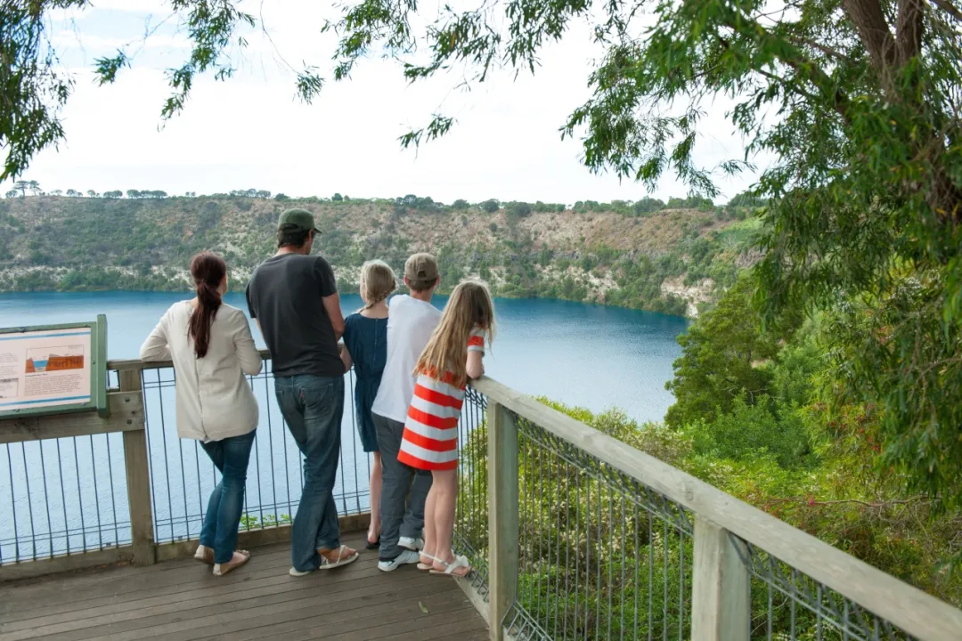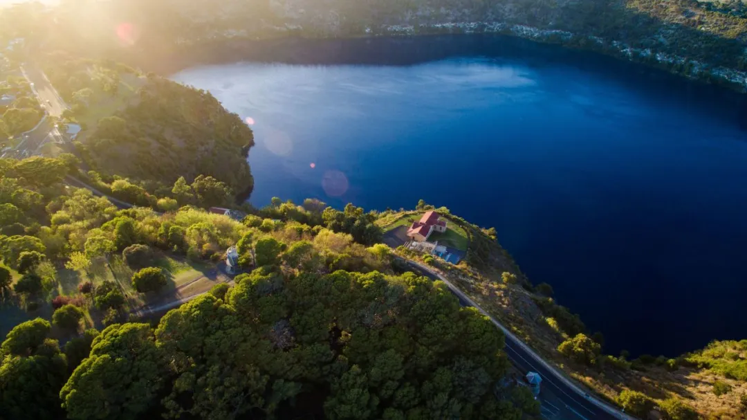 グレートオーシャンロードをさらに西へ車を走らせると、死火山の跡地に建てられた町、マウント・ガンビアに到着します。町の周囲には古い火山湖が広がっています。