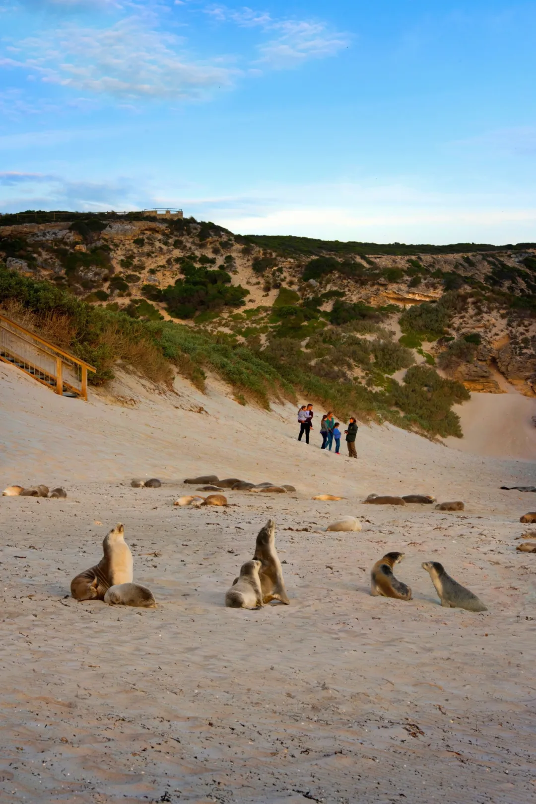 カンガルー島を訪れるなら、まずはシールベイは外せません。名前は「アザラシ」ですが、ここでは600頭以上のオーストラリア・アシカが保護されています。彼らは砂浜や砂丘に寝そべってのんびり休んでおり、そのかわいらしい姿はつい写真を撮りたくなります。
