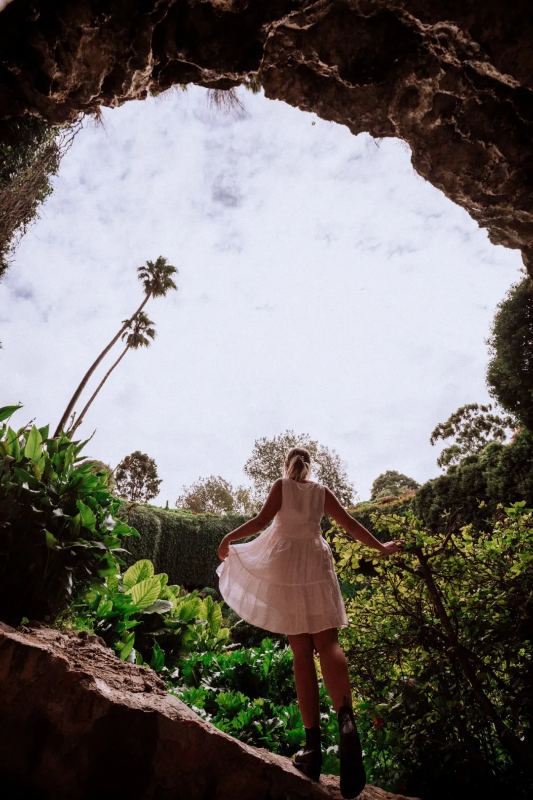 近くには24時間オープンの洞窟ガーデンもあり、絶好のフォトスポットです。洞窟は石灰岩が溶けて風化したもので、内部には色とりどりの花や植物が植えられています。階段とつる植物に沿って進み、園内を散策すると、まるで『不思議の国のアリス』の世界に迷い込んだような気分になります。