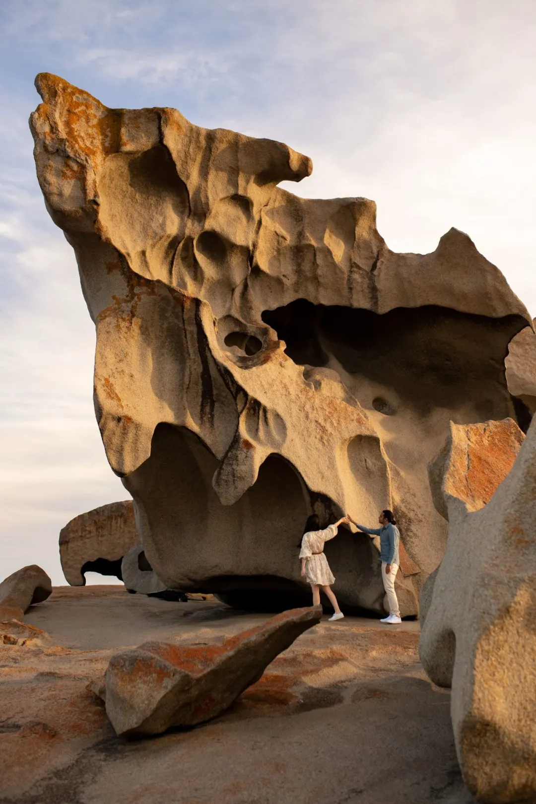 フリンダース・チェイス国立公園(Flinders Chase National Park)は島の西側をほぼ占めており、島の象徴的な景観・リマーカブルロックス(Remarkable Rocks)もここにあります。岩は荒波の上にそびえ、表面の色は時間帯によって変化し、太陽の光によって色彩豊かに輝きます。
